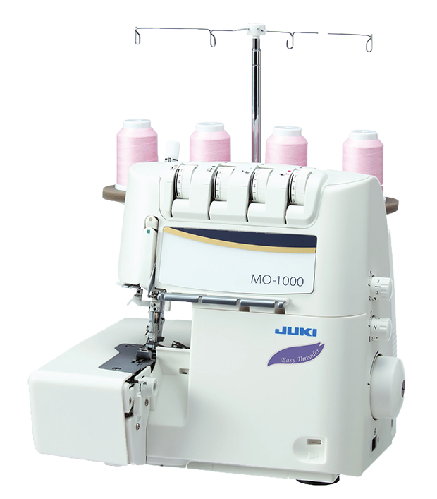 2-Needle, 2/3/4-Thread Overlock with Easy Threader and Differential Feed. Automatic rolled hemming, Option to deactivate upper knife, Safety feature preventing operation when the presser foot is upper position or the cover is open. Thread trimming blade for easy thread cutting. Adjustable presser foot pressure. Cutting width adjusting dial.