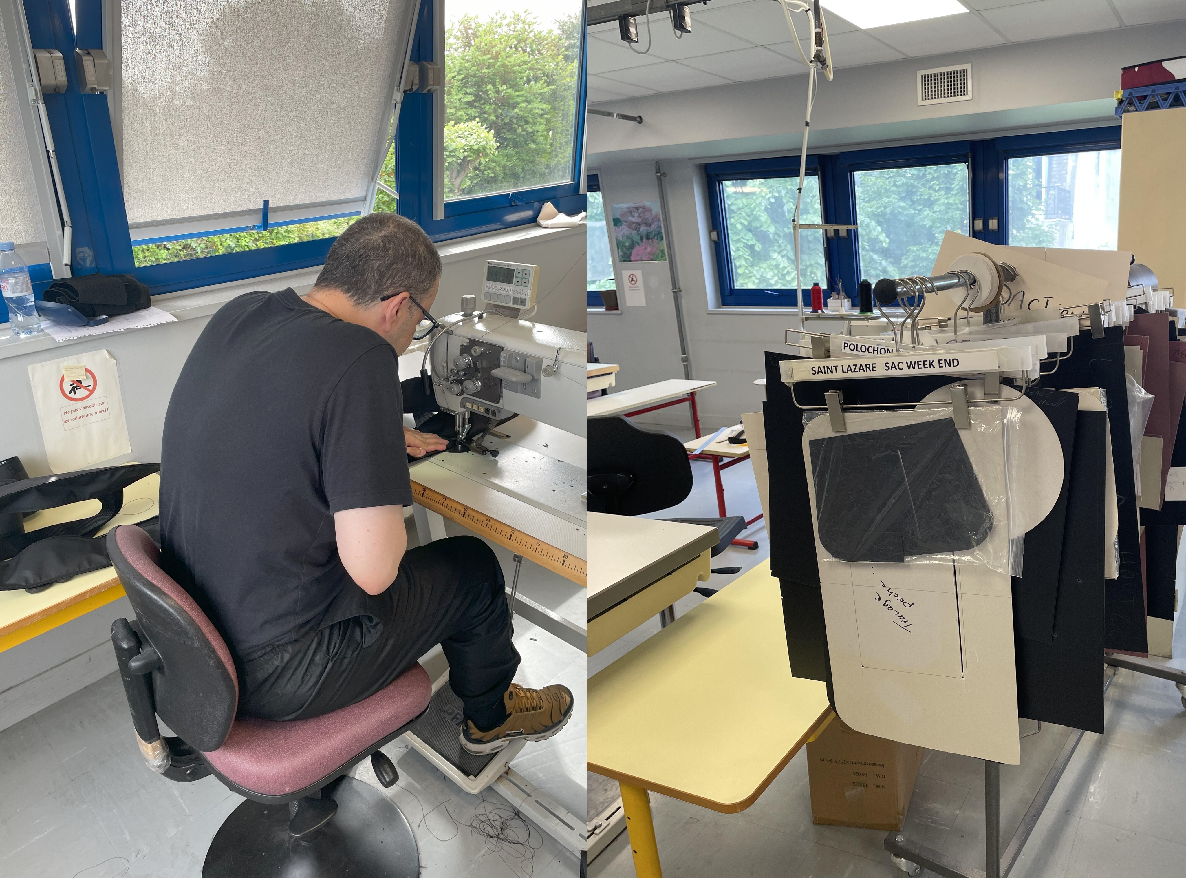 This presence leads Elmustapha Azelmad and Patricia Brand to talk about automatic sewing which could be interesting for the productions which are carried out in Chennevières: bags, luggage, pouches, pencil cases, wallets, notebooks, smartphone cases, professional equipment etc… Because the ESAT offers a wide range of leather goods.