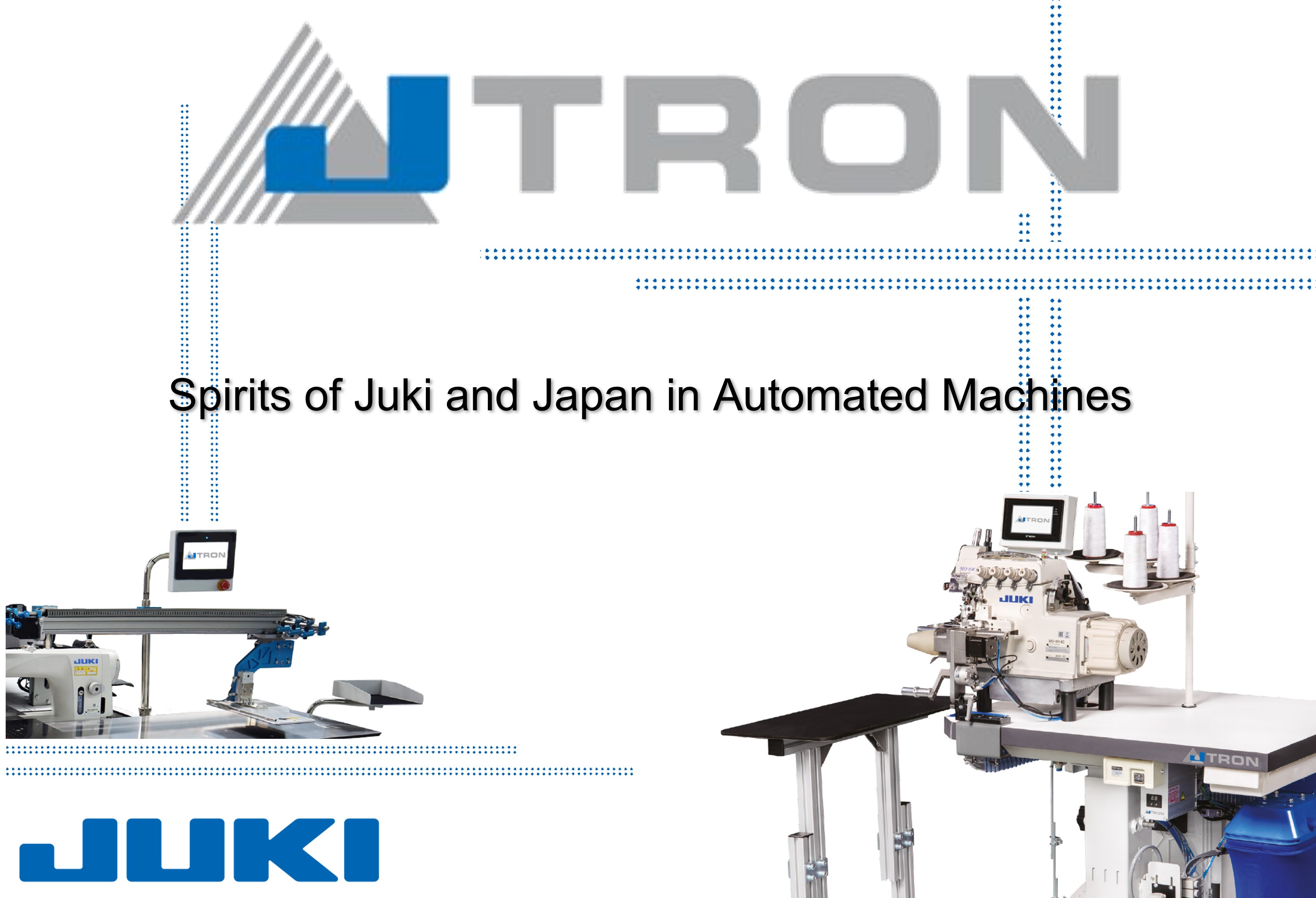 J in JTRON stands for “J” in JUKI and JAPAN, TRON derives from a Greek suffix meaning “Tools” and “Equipment”. We put the spirits of JUKI and JAPAN into the equipment and automated machines named by JTRON.