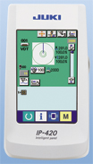 The large-sized liquid crystal touch panel, which has been developed to ensure ease of operation, dramatically increases efficiency in edit work. The IP-420 touch panel offers market-proven ease of operation. It is provided with a wide screen and programmable functions. Data can be input/edited while visually checking the needle movement. The color LCD unit displays sewing data such as stitch shape, needle thread tension, enlargement/reduction ratio, sewing speed and the number of stitches at a glance. The IP-420 is provided as standard with 14 different display languages.