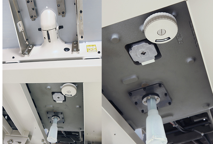 The feeding frame lift is 30mm at the maximum. This enables easy setting of a heavy-weight material on the machine.