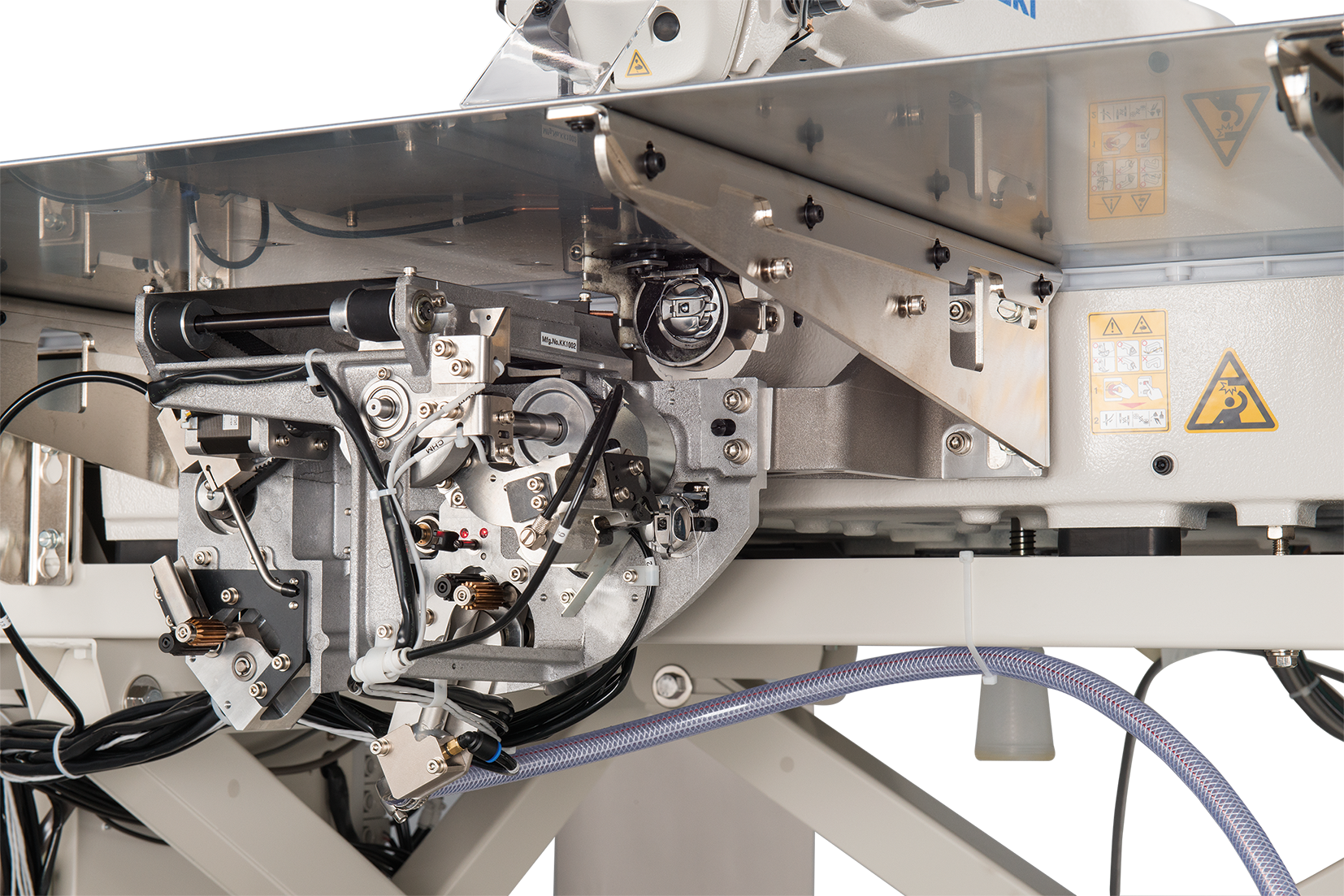The machine not only achieves higher productivity due to instantaneous increases/decreases in sewing speed at the beginning /end of sewing and increased speed of thread trimming, but also achieves a flexible responsiveness to materials to promise enhanced seam quality due to JUKI's unique active tension and programmable intermediate presser.