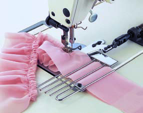 The thread take up mechanism, thread path components and different feed machanism have all been improved in this model. Thanks to this partial shirring can be carried out minium tension applied to the materials thus leading to greater flexibilty in responding to different types of material.
