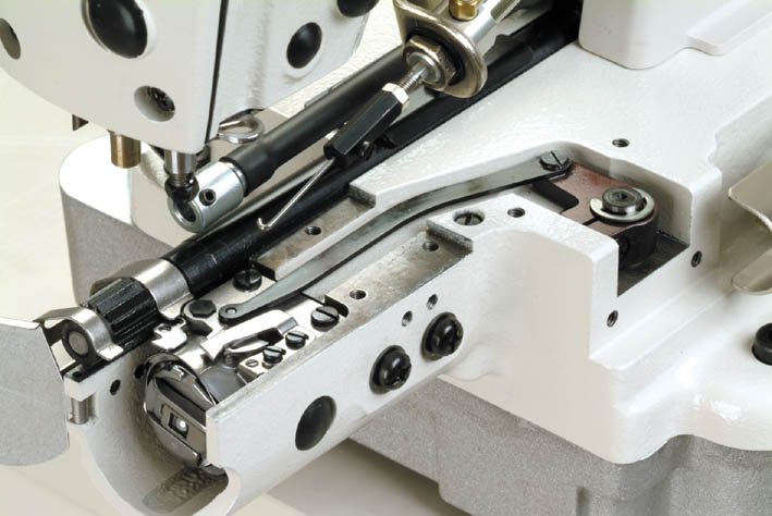 The last word in cylinder-bed lockstitch machines, intended for bottom hemming processes for jeans, casual pants and work uniforms. The needle bar stroke is as high as 35mm. This offers increased penetration of the needle into the material to improve adaptability to heavy-weight materials. The machine demonstrates excellent sewing capabilities, when sewing heavy-weight denim or multi-layered portions, that free it of sewing troubles such as stitch gathering, stitch skipping and needle breakage.