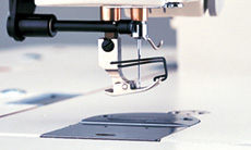 Thanks to the needle-feed mechanism which offers excellent efficiency of feed, the machine ensures accurate stitch pitches (stitch length) as well as preventing slippage of the upper cloth. The bottom feed's locus has been improved to match the needle feed motion, thus the machine produces beautiful seams without stitch gathering, even when it is used for sewing slippery and difficult-to-feed material or for handling a difficult process. The needle feed mechanism is a so-called "dry type", which does not require oiling. With this mechanism, a highly reliable machine structure, free from oil leakage troubles, has been achieved. The frame, which requires only a minute quantity of lubricating oil, is structured to eliminate oil leakage.