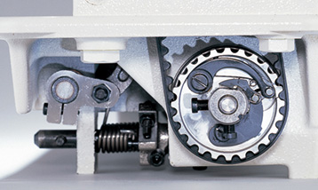 The ratio between 6.5mm alternating vertical movements of the walking foot and presser foot remains unchanged even with a different material thickness. Thanks to this feature and the adoption of a new method of rectangular feed that prevents needle from fraying, the machine sews multi-layered parts of a material with consistent stitching pitch while preventing stitch gathering.