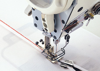 With its newly developed feed mechanism, the machine prevents “uneven feed of the upper and lower cloths” when sewing girdles and body suits made of slippery, elastic materials.