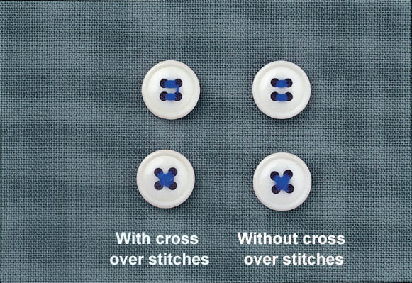 The machine sews buttons with beautifully finished seams