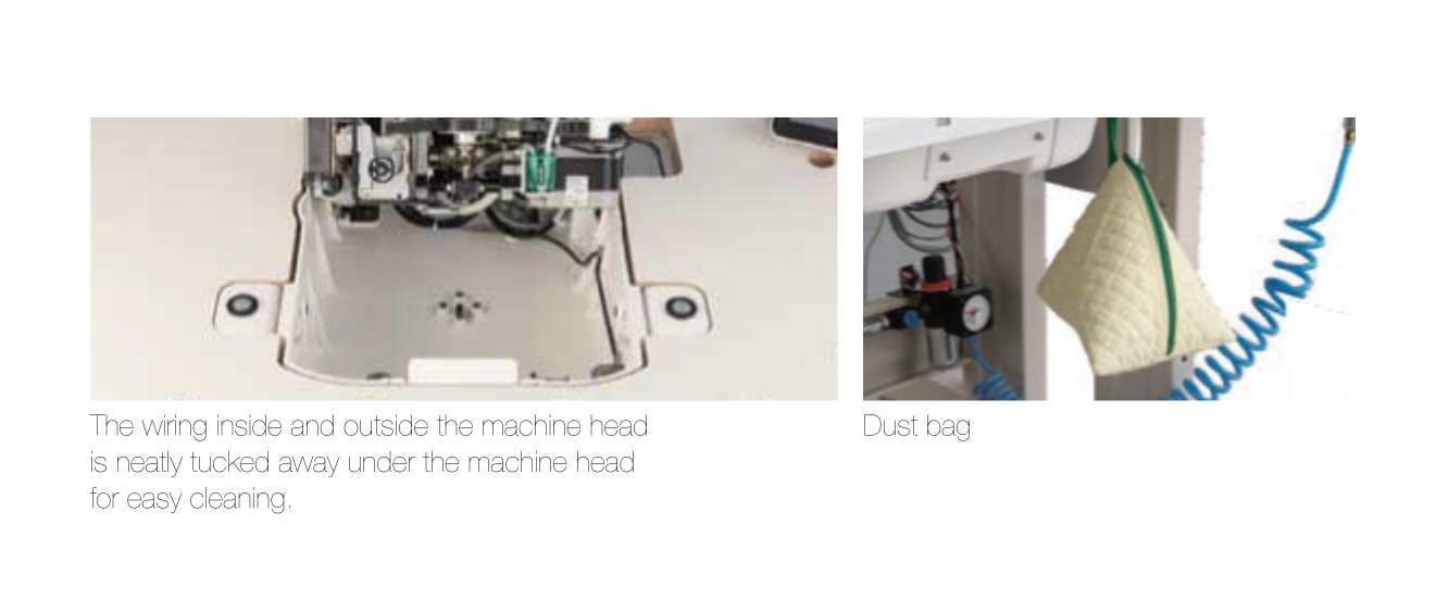 Configured with a large, highly visible color LCD touch panel for instant display of the stitch shape, set values, and menu settings for the sewing functions. Fast, intuitive touch-panel operation reduces the time taken to set the data and eliminates mistakes in sewing and machine operation.