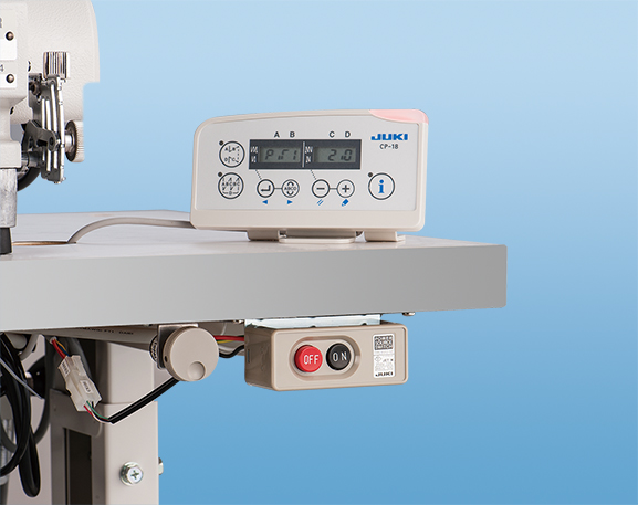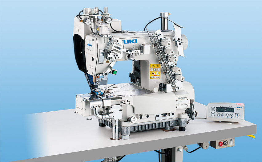 This new MF model comes with a world-first belt-feed system which is digitally controlled. It allows for fine and consistent seams regardless of the number of layers of fabric. The feeding system also has the benefit of delivering a even feed even for materials with slippery surfaces such as silk. The machine has been digitalized to allow for easy adjustment of settings such as the feed mechanism, thread tension and the feed locus, all through the operation panel. This digitization mean extremely accurate adjustments can be made to the machine with manual work. Such adjustments can then be replicated to other machines in a sewing line exactly ensuring the same sewing result.
