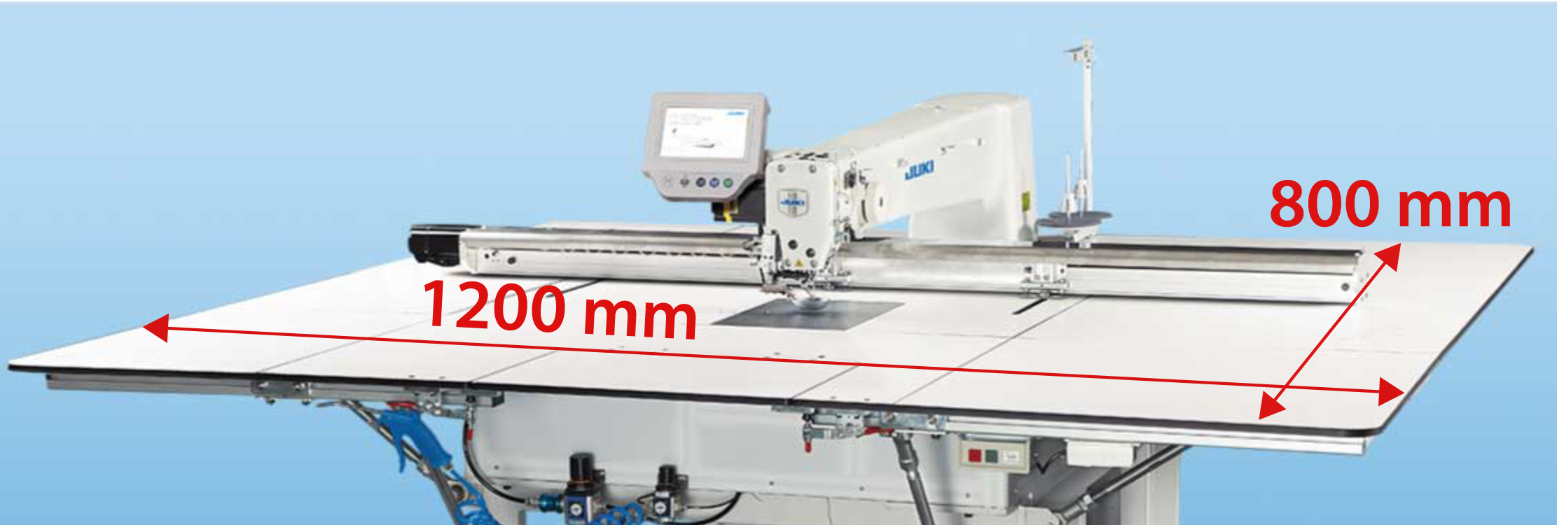 Juki PS-800 computer-controlled pattern seamer is available in two sewing area sizes, 1200 x 800mm or 800 x 450mm, depends on your needs. It ensures sewing speed up to 3000 sti/min. and supports various materials. Machine guarantees high precision and quality together with easy operation which does not require a skilled operator. Model is equipped with an intuitive panel and useful features. PS-800 can be equipped with a JUKI custom made clamp tailored perfectly to your production needs.