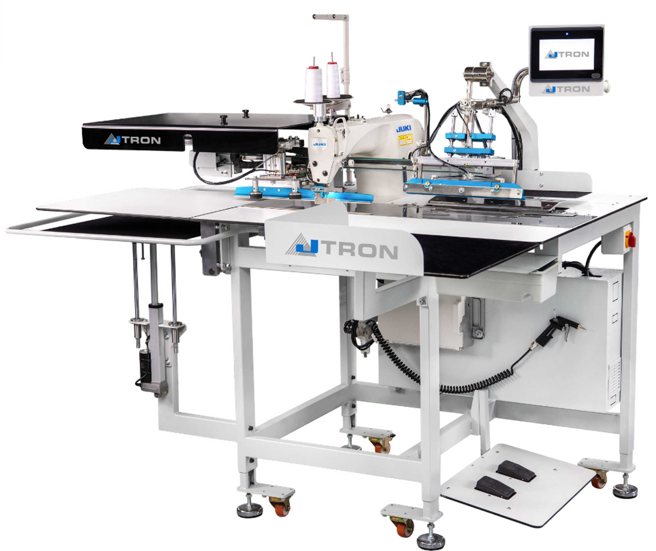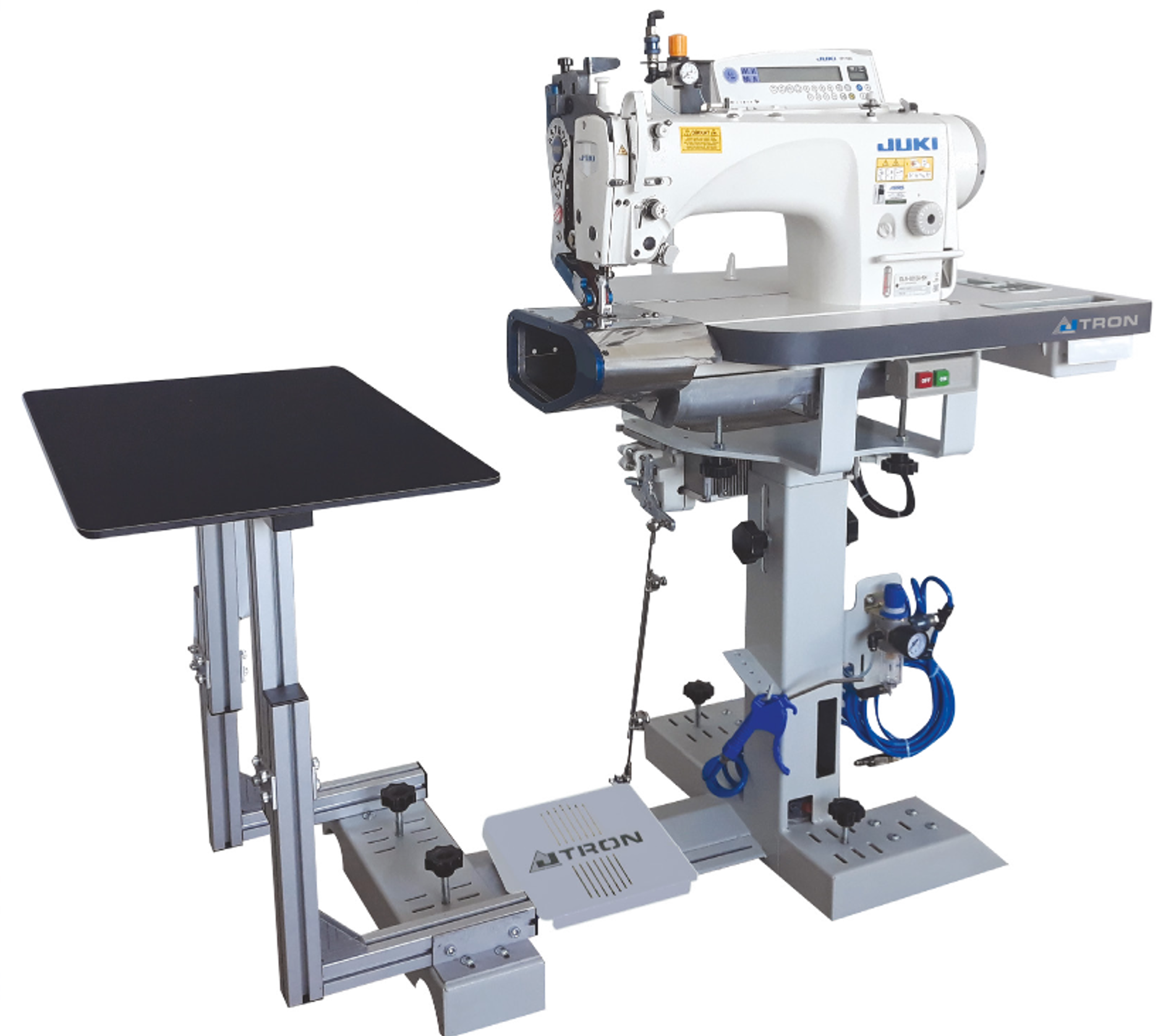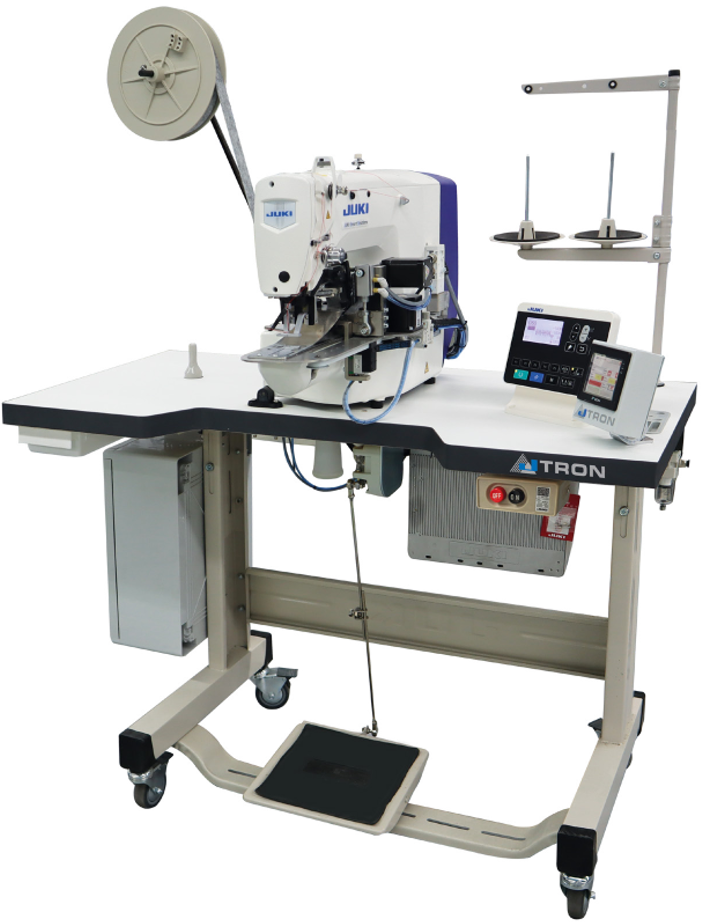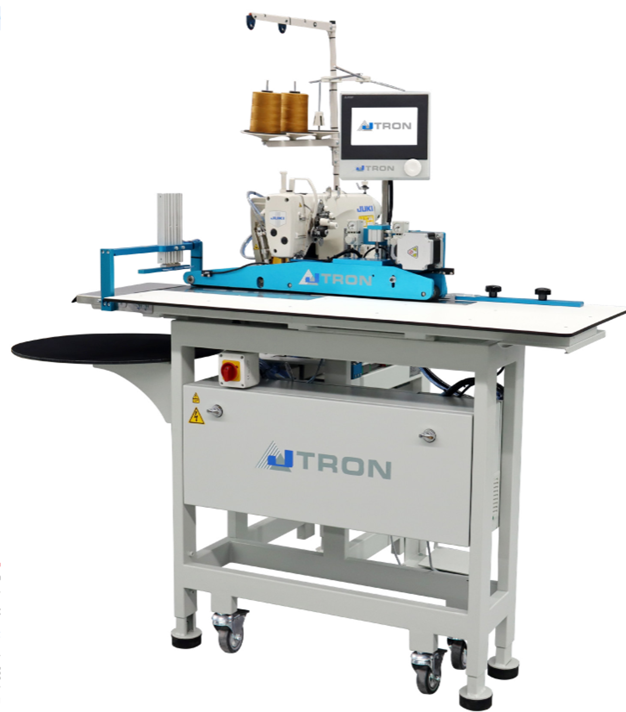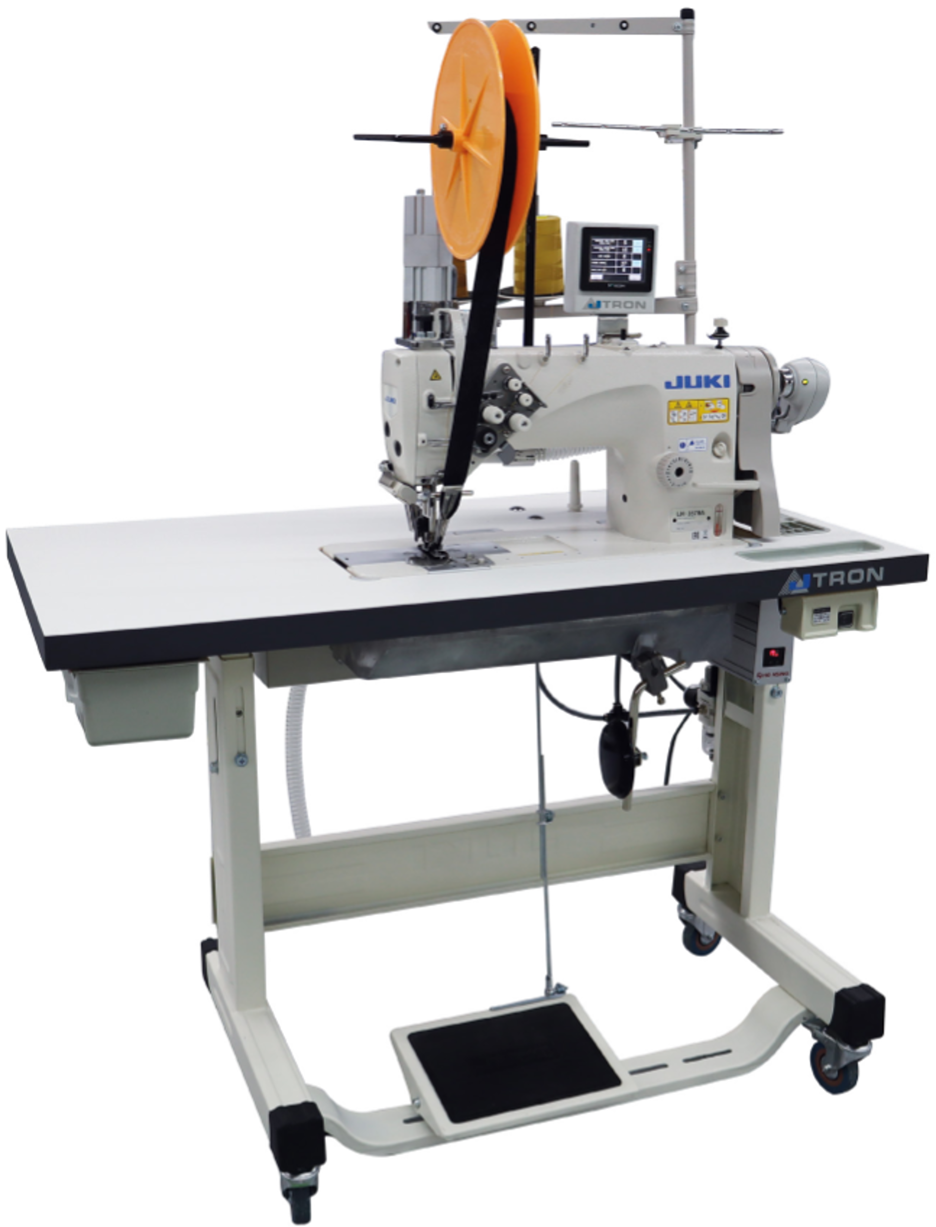 Machine is equipped with LCD touchscreen, photocell controlled thread trimming system and a special belt transport system. Hemming attachment provides 9 to 14 mm hemming marge. Three needle chainstitch sewing head with standard 6,4 mm gauge guarantees an excellent chainstitch quality. JTR-MF7523/PHA works well with fine or thick material.